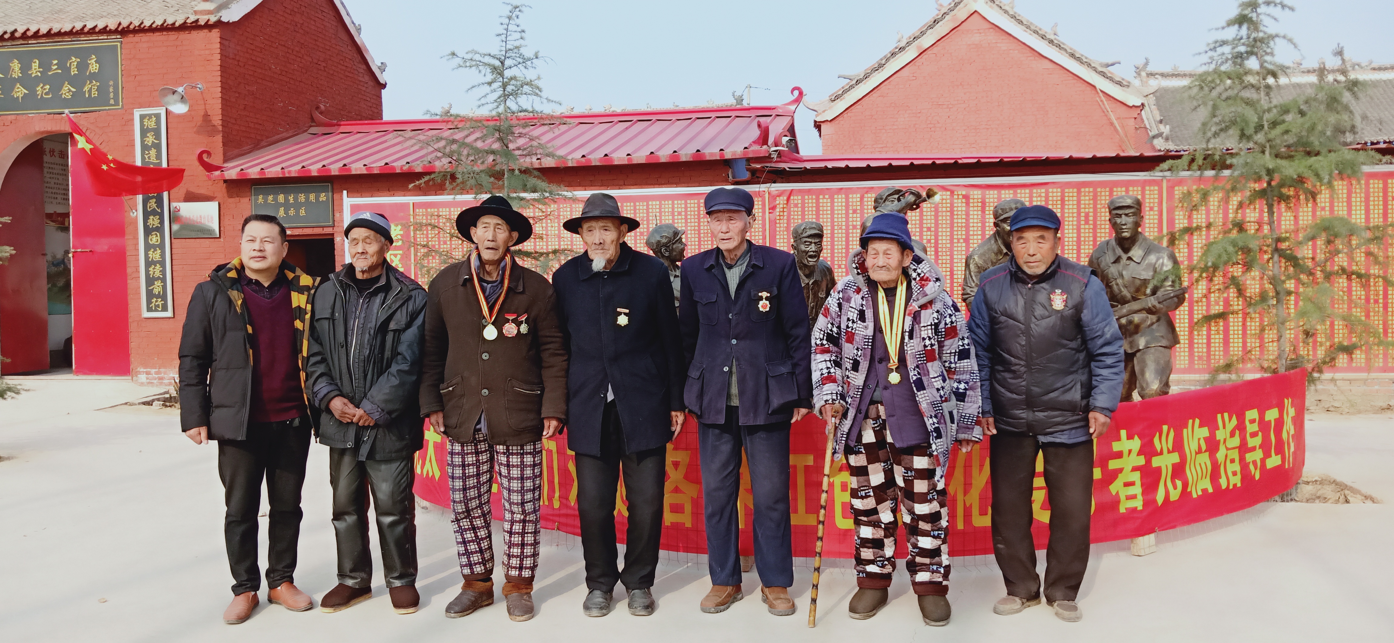 健在老兵在三官廟革命紀念館合影留念。