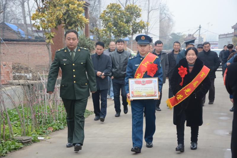 12月下旬,黃繼光生前所在部隊與沈丘縣人武部、沈丘縣退役軍人事務(wù)局共同商榷,為了使軍人的榮譽向官兵家庭拓展、向全社會輻射,在新年前開展一次功章勵我強軍志、立功喜報送到家活動,選派專人成立報喜小分隊,為立功授獎的官兵家庭送去立功喜報和慰問金。