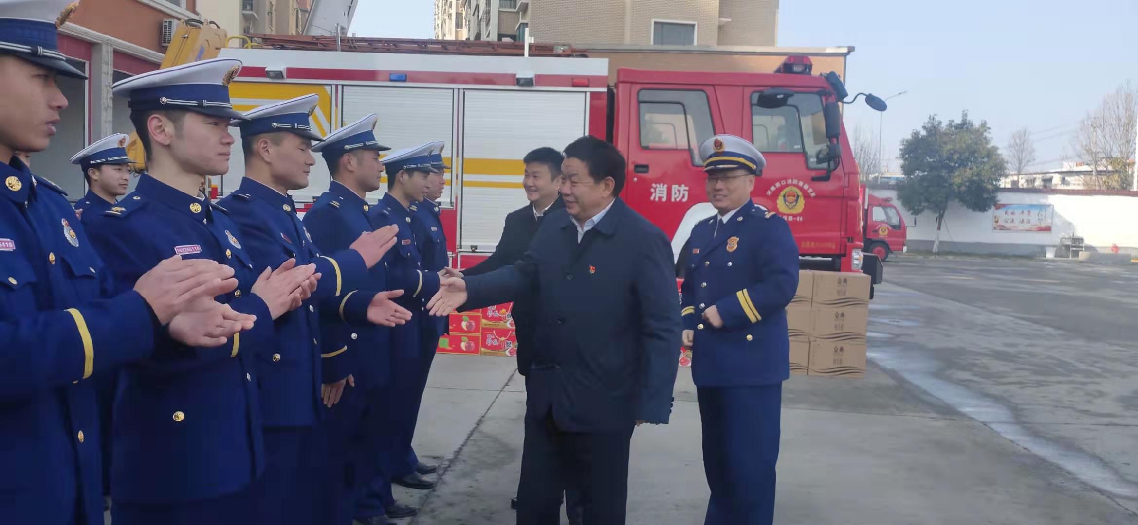 在川匯區(qū)消防救援大隊(duì),李宗喜一行與指戰(zhàn)員們一一握手,并送上節(jié)日的祝福。李湛說(shuō),在過(guò)去的一年里,消防指戰(zhàn)員牢記使命、履職盡責(zé)、竭誠(chéng)奉獻(xiàn),是一支拉得出、沖得上、打得贏的鐵軍隊(duì)伍,為保障全區(qū)經(jīng)濟(jì)建設(shè)、社會(huì)穩(wěn)定和人民生命財(cái)產(chǎn)安全做出了突出貢獻(xiàn)。希望大家在新的一年里再接再厲,忠誠(chéng)履職,為全區(qū)經(jīng)濟(jì)社會(huì)發(fā)展做出新的更大貢獻(xiàn)。