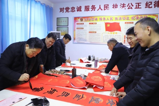 年末歲尾,我市書法家們到農(nóng)村、進社區(qū)為群眾們義寫春聯(lián),成為節(jié)前一道靚麗風(fēng)景線。1月16日,我市6位知名書法家來到周口港區(qū)公安分局,特意為節(jié)日期間還要堅守工作一線的公安民警、輔警現(xiàn)場寫春聯(lián),送祝福。