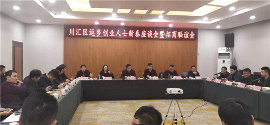 1月22日下午,川匯區(qū)舉行返鄉(xiāng)創(chuàng)業(yè)人士新春座談會(huì)暨招商聯(lián)誼會(huì),區(qū)委書記李宗喜、區(qū)長李湛、區(qū)委常委劉娟、高新區(qū)管委會(huì)主任張興龍出席會(huì)議。各街道辦事處主任、區(qū)直有關(guān)單位負(fù)責(zé)人,20名返鄉(xiāng)創(chuàng)業(yè)人士代表參加會(huì)議。