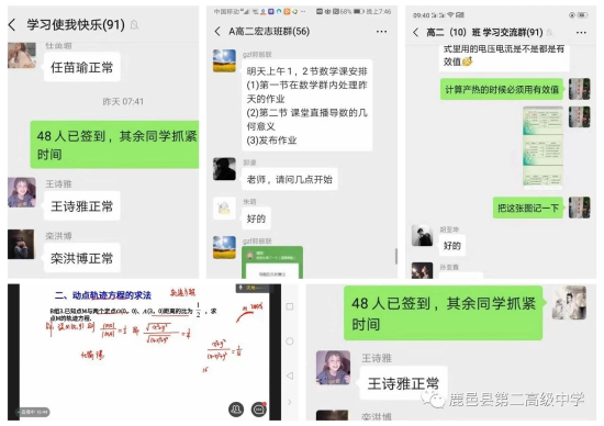 縣第二高級中學(xué)高三畢業(yè)班的班主任趙曉莉老師說:“疫情阻擋不了我對學(xué)生的關(guān)懷,疫情阻擋不了我對職責(zé)的擔(dān)當(dāng)!這就是我們二高人的精神和情懷!”新冠肺炎發(fā)生以來,學(xué)校以班級為單位組建網(wǎng)絡(luò)課堂,讓學(xué)生加入進(jìn)來,在線上直播課堂,學(xué)生聽課,線下布置作業(yè),學(xué)生按時(shí)打卡完成,實(shí)現(xiàn)停課不停學(xué),教師和學(xué)生“在家上課”!