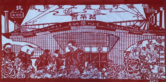 “我在為縣委林書記高鐵站送工創(chuàng)作一幅剪紙作品,你看看效果怎么樣?!苯?,西華縣奉母鎮(zhèn)剪紙藝人王銀生拿著剛剛創(chuàng)作的剪紙作品讓“疫情防控小分隊”提意見。