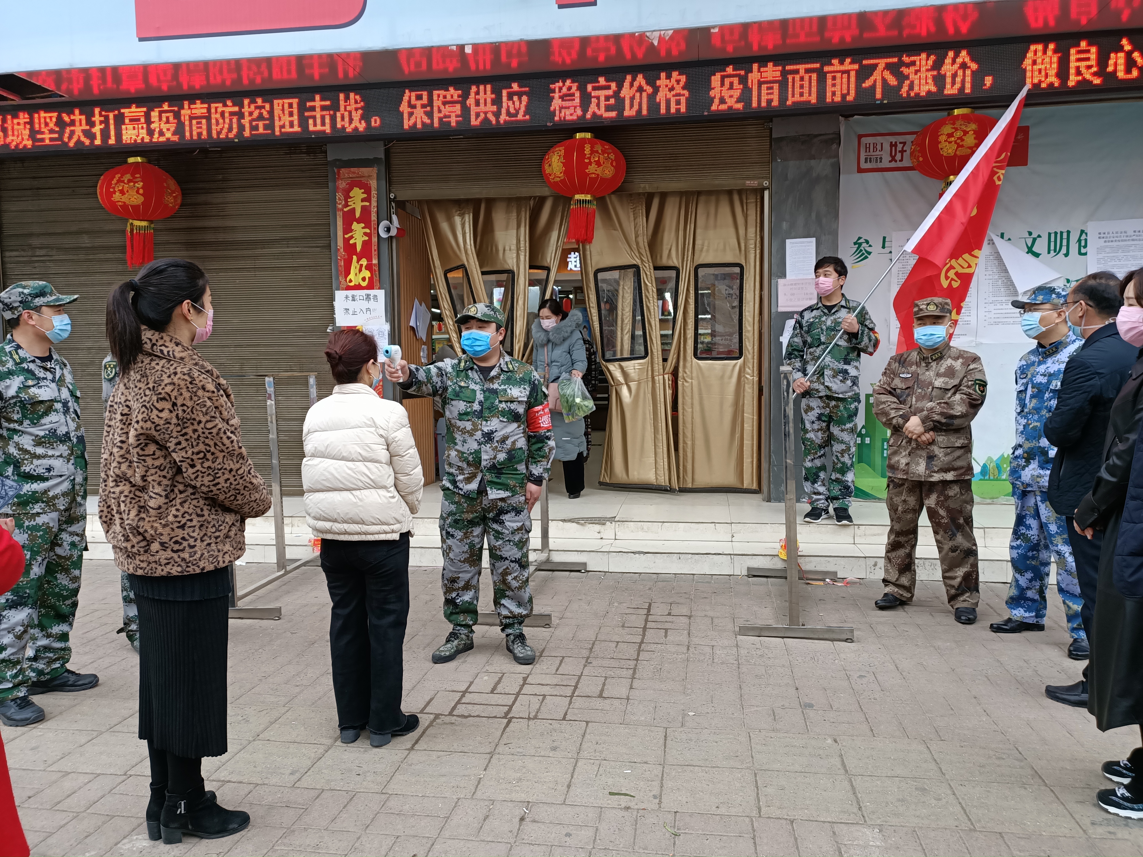 洺南街道基干民兵應(yīng)急分隊(duì)聞令而動(dòng)、聽(tīng)令而行,在縣人武部和街道黨工委的號(hào)召下,迅速集合,主動(dòng)亮明身份、做表率、當(dāng)先鋒,把打贏疫情防控阻擊戰(zhàn)作為踐行初心使命、體現(xiàn)責(zé)任擔(dān)當(dāng)?shù)脑嚱鹗瑧?zhàn)斗在疫情防控第一線。洺南街道位于縣城老城區(qū),也是縣城的商業(yè)區(qū),轄區(qū)道路較多,人員居住密集,流動(dòng)人口較多,疫情防控難度大、任務(wù)重。近期,隨著復(fù)工復(fù)產(chǎn)開(kāi)始,人員管控難度進(jìn)一步加大,洺南街道基干民兵應(yīng)急分隊(duì)按照街道黨工委、武裝部的安排部署,34名基干民兵應(yīng)急分隊(duì)隊(duì)員全部分配到基層防控一線,與社區(qū)干部、志愿者、抽調(diào)人員一起聯(lián)合執(zhí)勤,重點(diǎn)協(xié)助轄區(qū)超市開(kāi)展疫情防控,做好人員登記、體溫測(cè)量,秩序維護(hù),保障居民生活物資采購(gòu)的有序進(jìn)行。