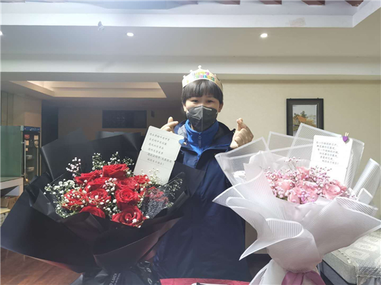 隊(duì)伍集合完畢,接下來的一幕令許聽聽始料未及。來自當(dāng)?shù)厣鐓^(qū)的工作人員,手捧蛋糕、鮮花,唱著生日歌,來到許聽聽面前,向她致以生日祝福。特殊時(shí)期,身處抗疫一線,忙于照顧病人,許聽聽此前對(duì)自己的23歲生日沒有任何憧憬,她告訴記者,其實(shí)她當(dāng)天沒想起來是她的生日,面對(duì)突如其來的生日祝福,許聽聽說:“當(dāng)時(shí)的心情既激動(dòng)又感動(dòng)。”。