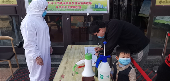 當(dāng)日凌晨3時(shí)30分,記者趕到這家早餐店,這里已是燈火通明,廚師和員工經(jīng)過(guò)測(cè)溫消毒后開(kāi)始了一天繁忙的工作?!半m然現(xiàn)在允許堂食了,但我們的防控工作依然沒(méi)有放松,認(rèn)真做好每一位食客的測(cè)溫和登記工作?!痹摰杲?jīng)理王艷告訴記者,他們是昨天接到縣食品藥品監(jiān)督部門(mén)允許堂食的通知,隨后,他們對(duì)店面進(jìn)行了全面消殺工作,并將餐桌撤掉一半,保持一米以上間隔距離。