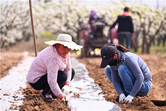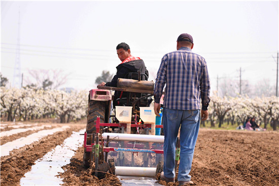 春光明媚,土壤濕潤(rùn),正是春耕春播的好時(shí)機(jī),農(nóng)民們給玉米、冬小麥、棉花等農(nóng)作物開播、澆水、施肥,為秋季豐收做好布局。近日,記者在黃泛區(qū)看到,農(nóng)民們種植玉米已經(jīng)實(shí)行機(jī)械化,下種、施肥、打藥、壓上薄膜,一次成型,減輕了勞作的壓力。
