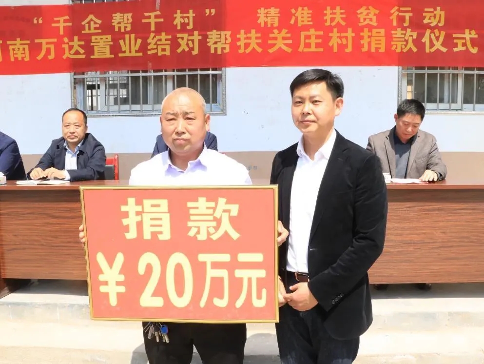 4月13日上午,河南萬達置業(yè)有限公司結對幫扶捐款儀式在市城鄉(xiāng)一體化示范區(qū)許灣鄉(xiāng)關莊行政村隆重舉行?,F(xiàn)場,該公司為關莊行政村捐款20萬元助力脫貧攻堅。