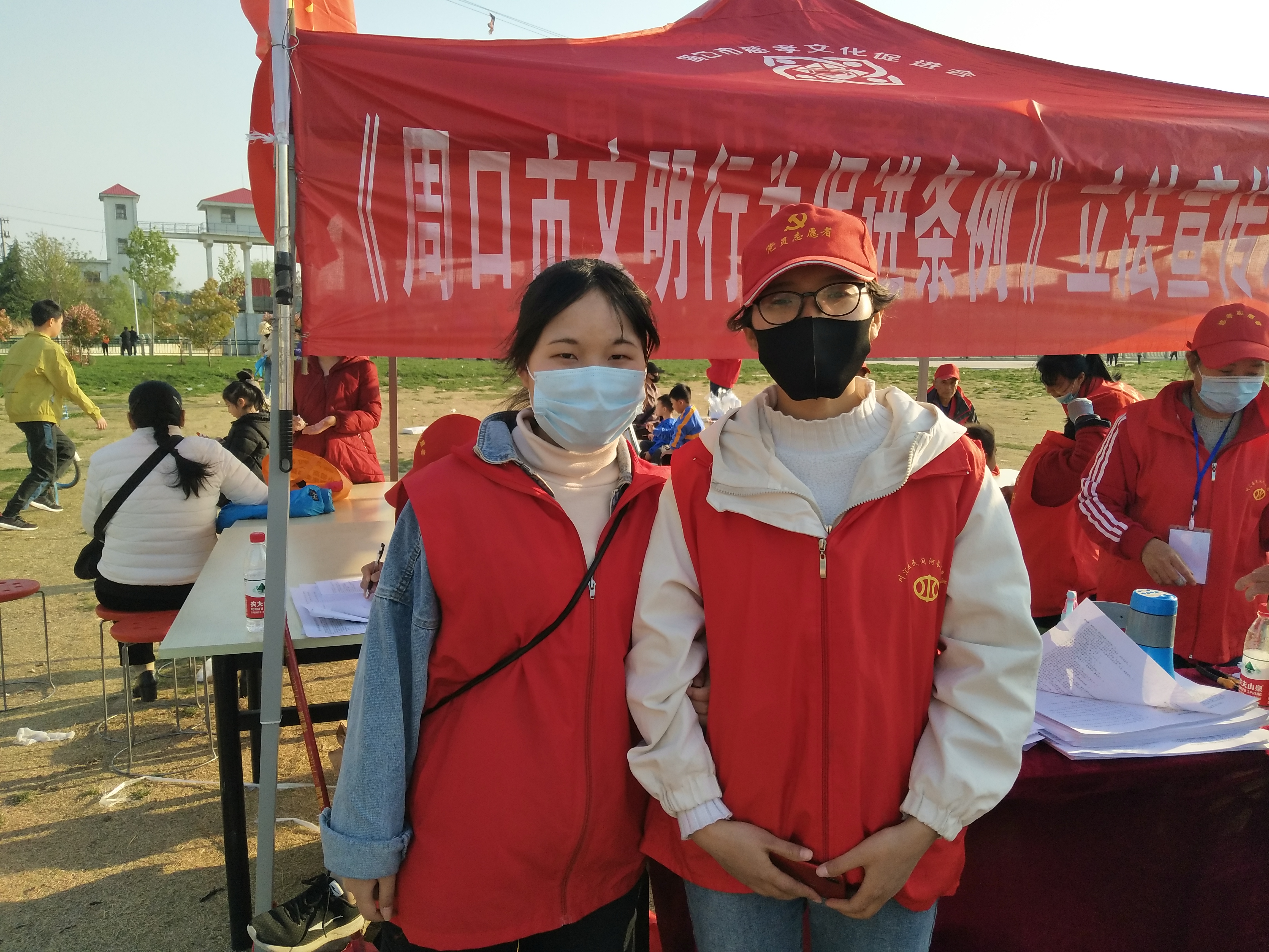 說著,孫彩云帶領(lǐng)記者走進(jìn)《周口市文明行為促進(jìn)條例》調(diào)查問卷棚?!拔覀兘裉焐衔缭谖逡粡V場(chǎng)做問卷調(diào)查,收了300多份,下午轉(zhuǎn)移到這里,這兩個(gè)淮陽(yáng)來的大學(xué)生全程跟著?!眱擅髮W(xué)生看著記者,帶著口罩,雙眼彎彎不擋笑意,她們說:“我們是在海南上的大學(xué),很喜歡參加志愿者活動(dòng),這不因?yàn)橐咔楝F(xiàn)在還沒開學(xué)嗎,在網(wǎng)上查到慈孝文化這個(gè)組織就來了?!?/p>