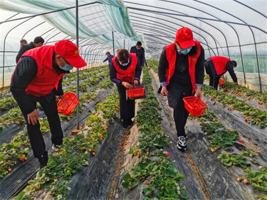 黨員志愿者到幫扶村向過往群眾宣傳普及新型冠狀肺炎防治知識,發(fā)放新型冠狀病毒感染防控指南,并幫助村民采摘、銷售因疫情而滯銷的草莓,深受當(dāng)?shù)厝罕姺Q贊。