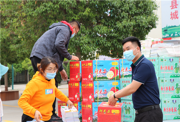 不久,一輛小貨車駛?cè)雽?shí)驗(yàn)小學(xué)院內(nèi),滿載著水果、毛巾、酒精、消毒液、洗手液和圖書等物資,總計(jì)價(jià)值兩萬余元。吳玲玲跳下車,向迎上來的韓濤簡(jiǎn)單地打了招呼,便和學(xué)校工作人員一起把水果等物資卸載搬運(yùn)。