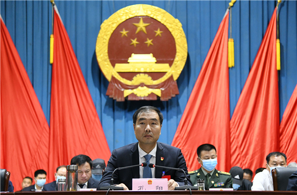 上午8時(shí)30分,商水縣委書記孔陽宣布商水縣第十五屆人民代表大會第四次會議開幕,全體起立,會場響起雄壯的國歌聲。