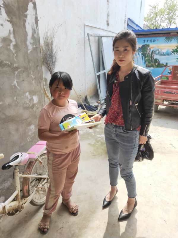 蘭秋菊給孔寨村貧困戶孔剛強(qiáng)女兒送學(xué)習(xí)資料