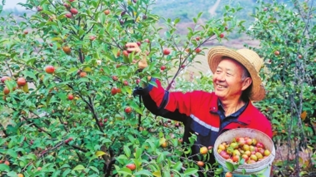 10月10日,靈寶市焦村鎮(zhèn)羅家村,位于國家4A級旅游景區(qū)娘娘山腳下的現(xiàn)代矮砧蘋果園里,去掉紙袋的紅蘋果綴滿枝頭,正曬著日光,散發(fā)出淡淡清香。