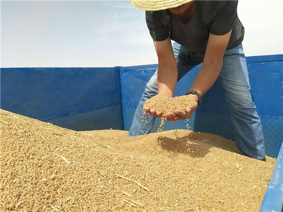 今年3月以來,本報(bào)持續(xù)關(guān)注這種中藥肥料使用效果,并到多塊麥田現(xiàn)場采訪。麥?zhǔn)占?,記者再次來到商水縣,了解經(jīng)中藥肥料噴施小麥的收成情況。