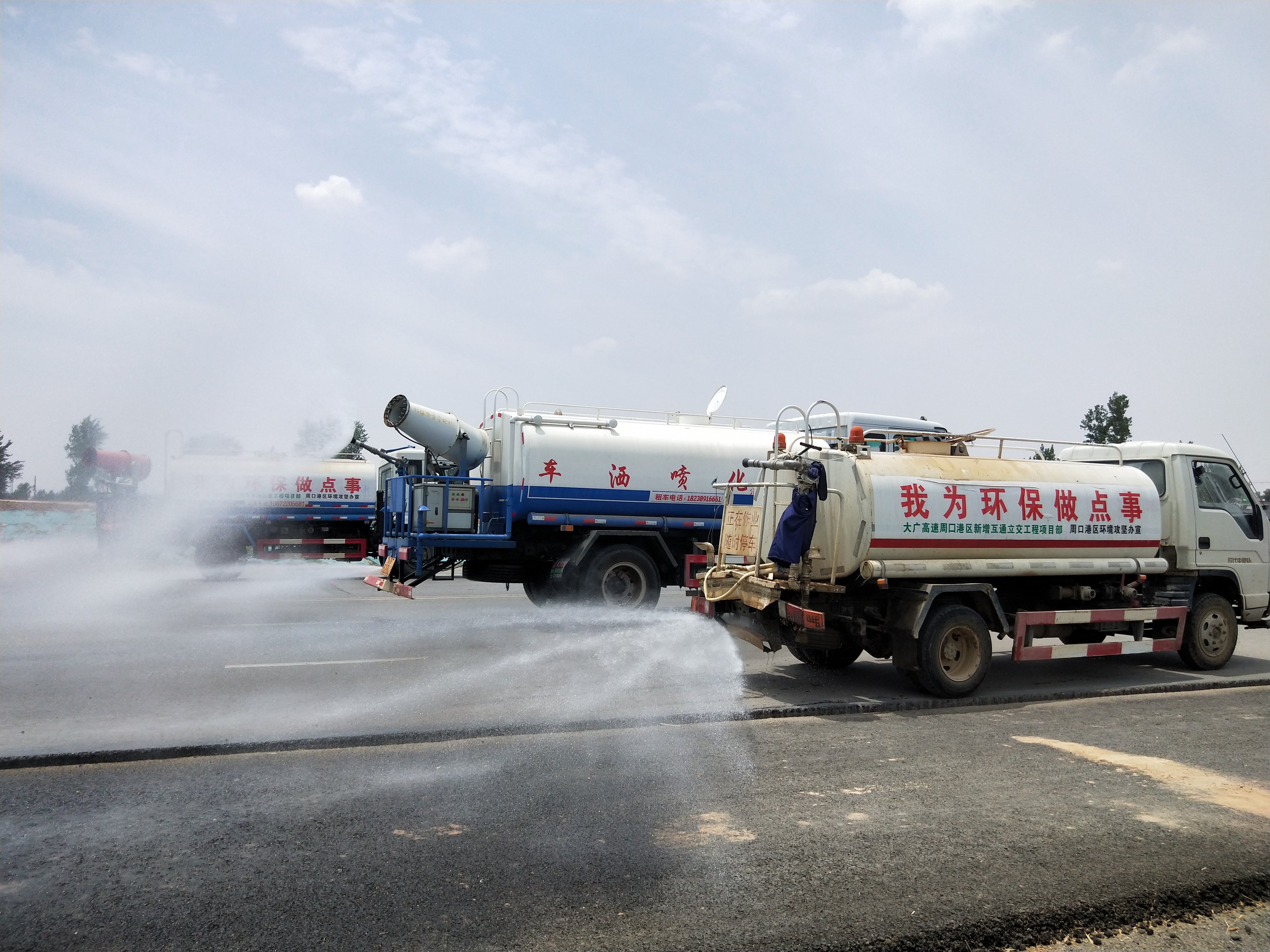 大廣高速港區(qū)互通立交項目工地負責人劉百輝介紹,該工地目前投入4臺灑水車、4個固定小型霧炮,每天早晨6點30分起至晚12點結束,不間斷噴灑工地門前1公里周項路段,在做好工地日常環(huán)保噴灑的同時,為維護工地周邊環(huán)境出一份力。