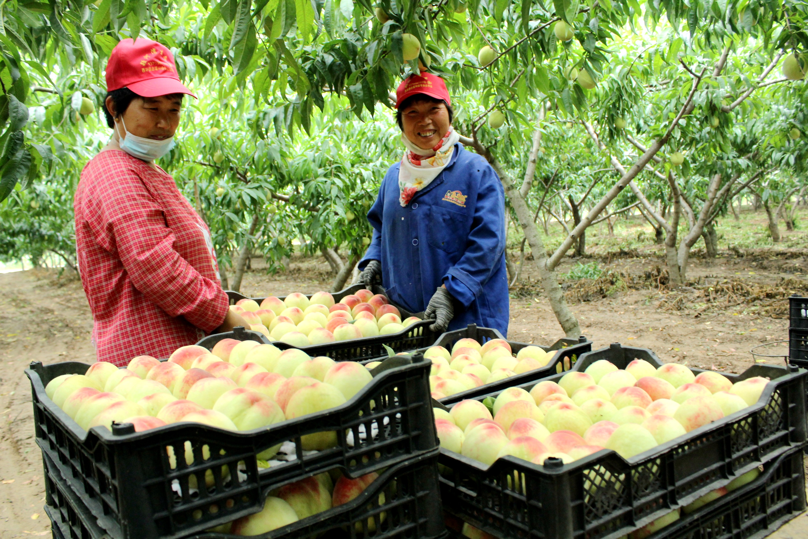 近期,由于天氣晴好,陽(yáng)光充足,雨水適宜,黃橋萬(wàn)畝桃園的水蜜桃早熟上市,個(gè)大、色艷、多汁、脆甜可口的桃子掛滿枝頭,桃農(nóng)們正在忙著采摘、包裝、裝車,將優(yōu)質(zhì)大桃發(fā)往全國(guó)各地。在萬(wàn)畝桃園柏油路兩側(cè),賣水蜜桃的攤點(diǎn)一個(gè)挨著一個(gè),又大又紅的水蜜桃吸引眾多過(guò)往路人購(gòu)買。