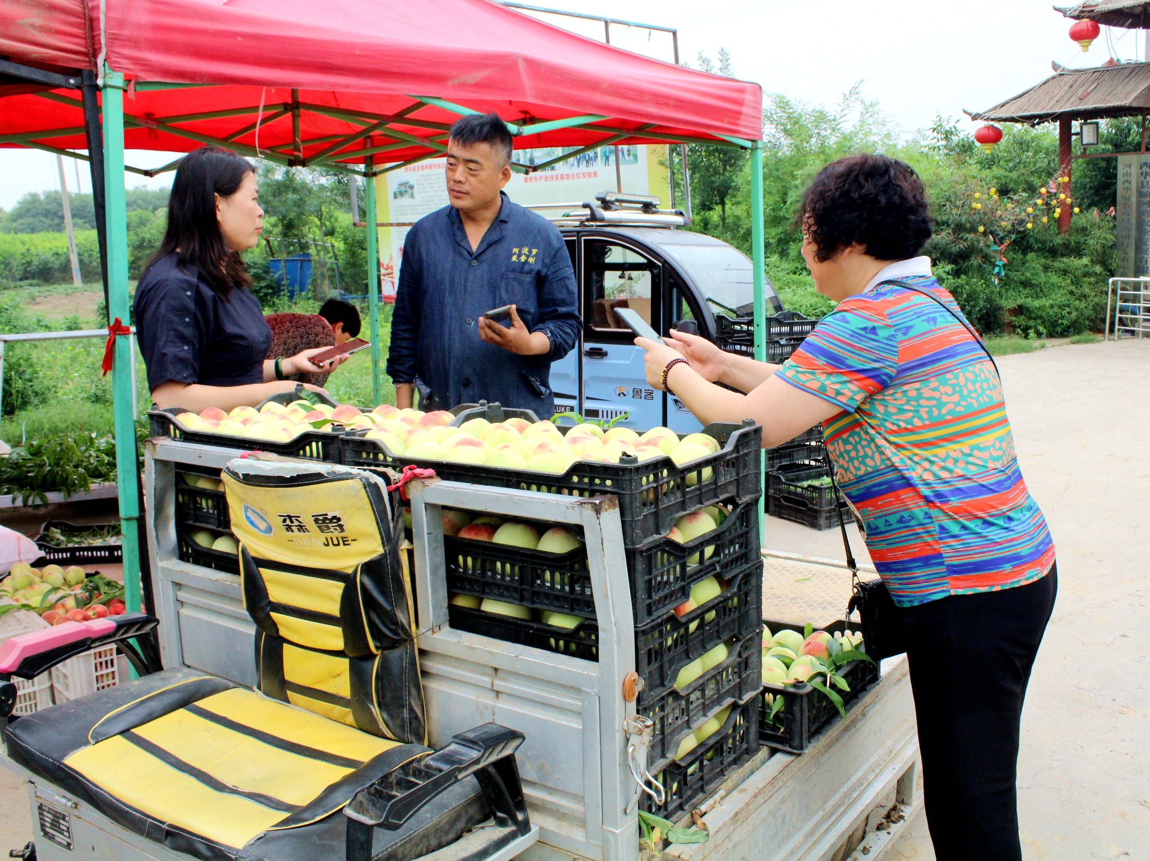 當(dāng)日,她與姐妹們一起帶著自家的孩子,驅(qū)車20多公里,來(lái)到西華縣潁河灣生態(tài)采摘園,采摘、品嘗黃橋水蜜桃,歡笑之聲,不絕于耳。這是黃橋萬(wàn)畝桃園五月鮮桃上市后,周邊縣市市民采摘、品嘗、購(gòu)買水蜜桃的一個(gè)縮影。