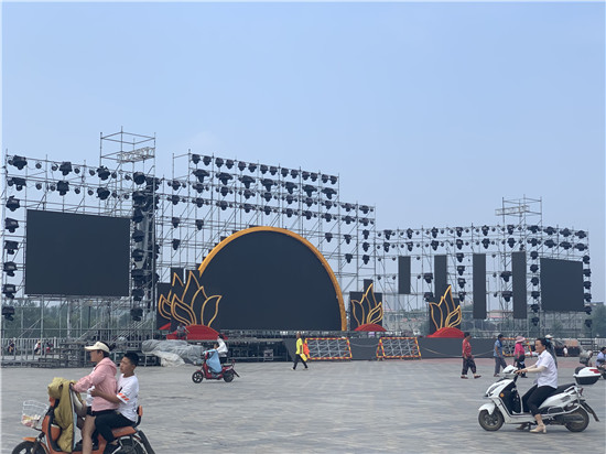 淮陽荷花節(jié)開幕式舞臺(tái)在太昊陵廣場(chǎng)廣場(chǎng)造型完工。據(jù)悉,2020年7月10日晚8點(diǎn)在此開幕,同時(shí)在舞臺(tái)東側(cè)的龍湖上將上演全息水幕燈光秀。