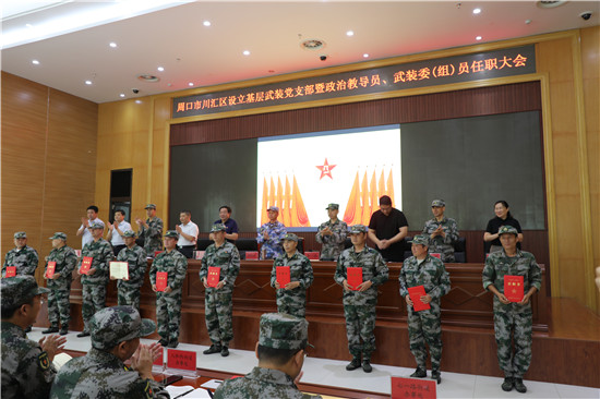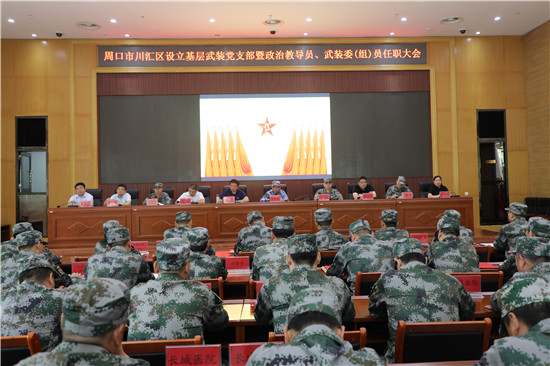 黨管武裝建設(shè)國防,軍民攜手共筑長城。為健全武裝工作組織領(lǐng)導(dǎo)體系為推動國防動員和后備力量建設(shè)在基層末端落實,7月16日上午,周口市川匯區(qū)召開基層武裝黨支部暨政治教導(dǎo)員、武裝委(組)員任職大會。周口軍分區(qū)司令員湯維政,區(qū)委書記、區(qū)人武部黨委第一書記李宗喜,市委組織部處級干部宋陽,區(qū)人武部政委高新傳、部長陳繼芳及城鄉(xiāng)一體化示示范區(qū)、經(jīng)濟(jì)開發(fā)區(qū)、港口物流產(chǎn)業(yè)聚集區(qū)等有關(guān)負(fù)責(zé)同志參加了大會。會上設(shè)立了18個基層武裝黨支部,任命了15名基層武裝部政治教導(dǎo)員、20名村(社區(qū))武裝委(組)員任職命令,武裝部政治教導(dǎo)員、武裝預(yù)建黨支部書記和兼職武裝委(組)員代表先后作了履職承諾發(fā)言,湯維政等為新任命的人員頒發(fā)了任職證書。
