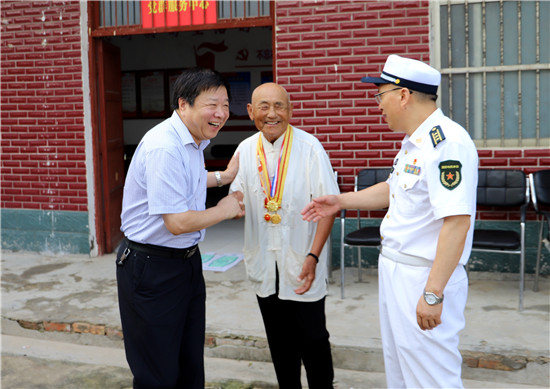 在90歲五級因戰(zhàn)殘疾軍人劉德山家,大伙認真聽劉德山講述部隊的故事;汲冢鎮(zhèn)黃竹園行政村劉老家村88歲劉應平參加過抗美援朝,如今年邁的老劉嚴重耳聾、語言交流障礙,還得靠親屬“翻譯”才能搭上一兩句話,當聽到問他生活好不好時,老劉興奮地豎起拇指說:“好好好”;今年94歲的抗戰(zhàn)老兵丁相廷身體十分硬朗、精神矍鑠,不拄拐、眼不花、耳微聾,得知縣領(lǐng)導要來慰問,老丁早早地把自己的軍功章準備好了,一個個掛在胸前,見面一個軍禮彰顯剛強作風。從1945年入伍至1950年復員,老丁記得清楚、講得明白,大伙聽得有味、不停點贊;巴集鄉(xiāng)段寨村92歲抗美援朝老戰(zhàn)士段相士有個堅持幾十年的好習慣,他每天早上都在村里走一圈,感受美麗鄉(xiāng)村變化,再用溫水抹抹澡,保持健康體魄。