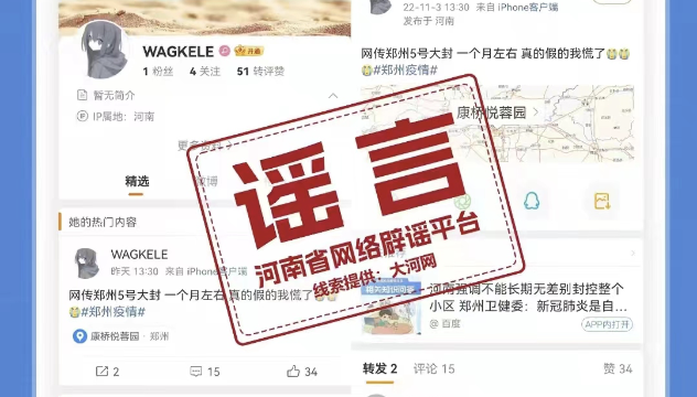 ?12月1日晚,記者從鄭州市疫情防控指揮部獲悉,網(wǎng)傳“12月2號至8號鄭州又要封”是謠言。