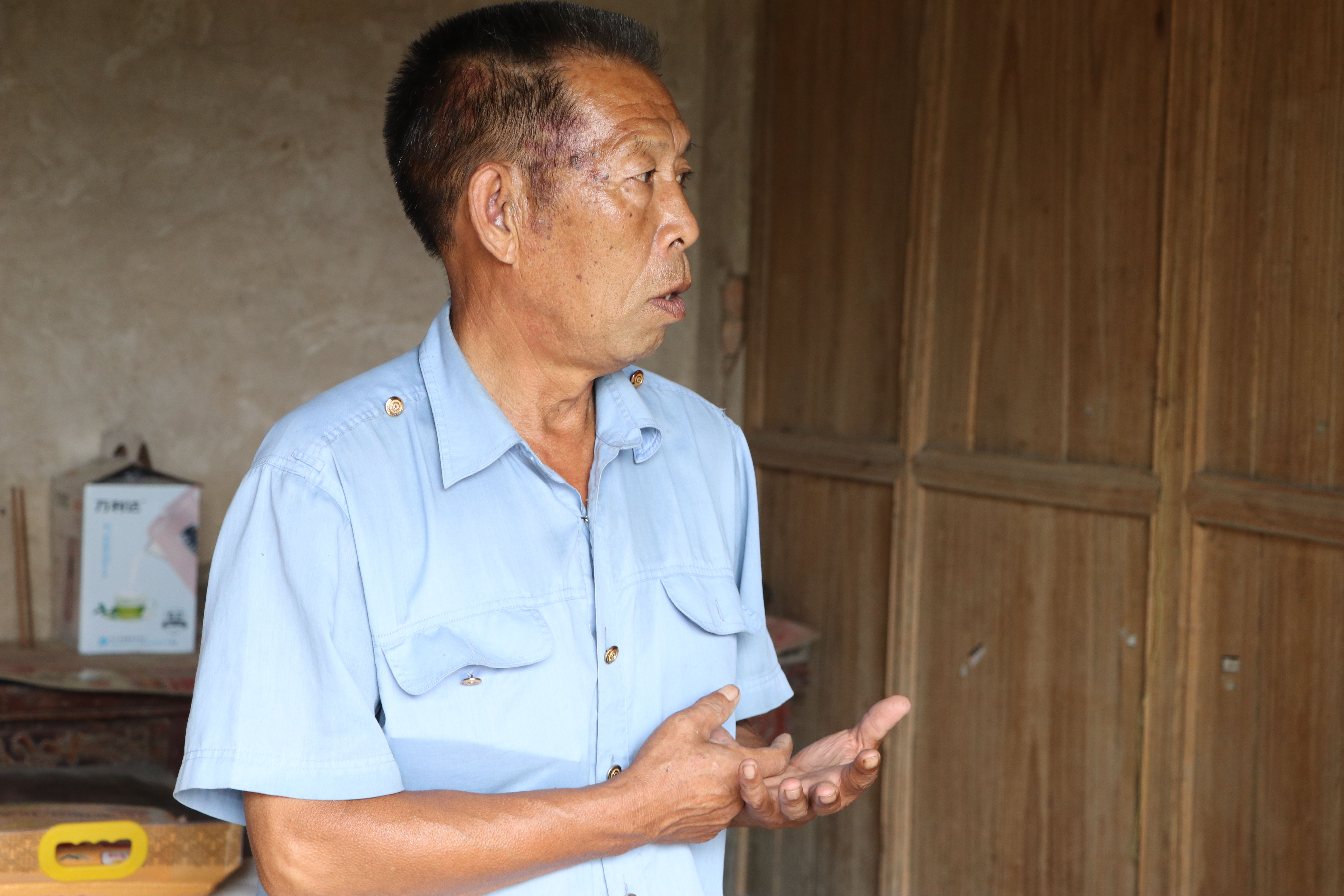 孫朝杰一人扛起了家里的大小事,盡心盡力地照顧母親,院里院外從不遠(yuǎn)行,他不能外出打工,生活拮據(jù)??h委組織部駐村干部尚衛(wèi)東第一次跟著支部書記孫玉彬一起到孫朝杰家里走訪時,他正背著母親到門口曬太陽,看到他們,孫朝杰有些窘迫。