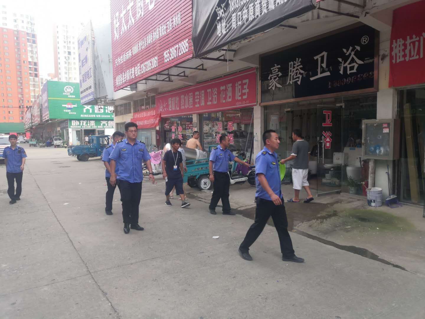8月5日川匯區(qū)五城聯(lián)創(chuàng)暨老舊小區(qū)改造晨會結(jié)束后,區(qū)五城聯(lián)創(chuàng)指揮部辦公室組織小橋街道辦事處、區(qū)城管局、區(qū)應(yīng)急管理局、區(qū)市場發(fā)展中心、區(qū)消防救援大隊、區(qū)住建局、區(qū)社區(qū)建設(shè)管理局等多部門,對中原國際商貿(mào)城存在的創(chuàng)文和創(chuàng)衛(wèi)問題進行集中整治。