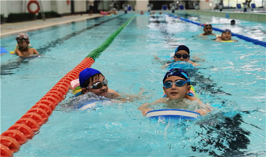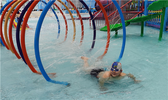 8月16日,不少家長(zhǎng)帶孩子在周口游泳館游戲嬉戲。持續(xù)的高溫天氣讓周口進(jìn)入“燒烤”模式,水里的清涼世界成了消暑降溫的好去處,不少市民選擇到游泳館、水上游樂(lè)場(chǎng)館,既可以游泳鍛煉身體,也可以和孩子們?cè)谒杏H子玩耍。
