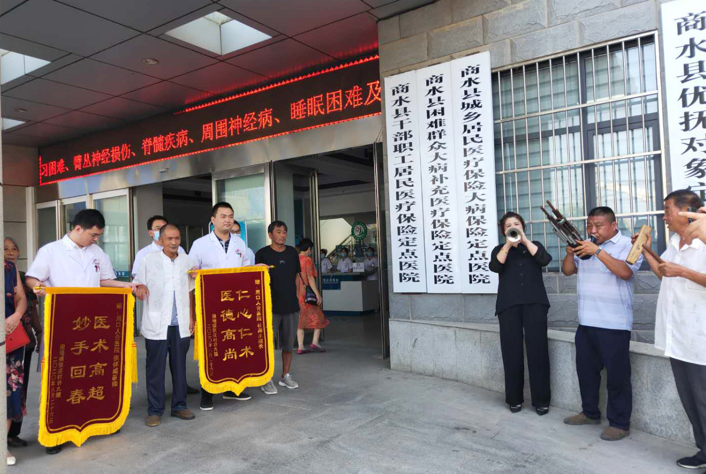 “醫(yī)術(shù)醫(yī)風醫(yī)德好,俺給好醫(yī)生送錦旗”,歡快高昂的嗩吶聲響徹周口人合醫(yī)院急診部門前,嗩吶手以歡快的音樂表達著感激的話語,8月27日上午10時,來自商水縣固墻鎮(zhèn)張莊村的許九德老人帶著家人和一班嗩吶手,來到周口人合醫(yī)院送來錦旗,以農(nóng)民最樸實的方式表達自己的謝意。