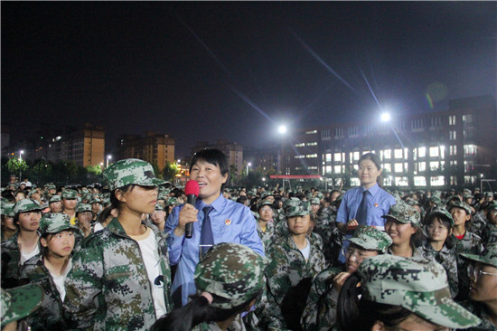 "你們正處于人生的花季,知識(shí)是養(yǎng)分,那么法律知識(shí)就好比是殺蟲劑,要學(xué)好,更要用好,要做到知法、守法、用法,在法治護(hù)航下遠(yuǎn)離校園欺凌,拒絕電信網(wǎng)絡(luò)詐騙,不義之財(cái)不可取,防范之心不可無……”。8月29日晚上7點(diǎn),黃昏謝去,暮色已經(jīng)模糊起來了,伴著淺淺的晚霞,扶溝縣檢察院檢委會(huì)專職委員郁玉琴帶領(lǐng)該院“女檢察官特別護(hù)未隊(duì)”的三名女檢察官到扶溝高中為正在接受軍訓(xùn)的1600余名高一新生們上了一堂別開生面的法治課。