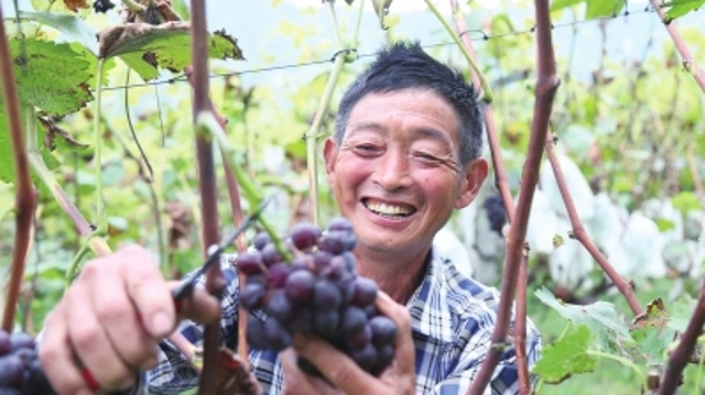 ? 9月14日,汝陽縣十八盤鄉(xiāng)斜紋村冰墨葡萄種植專業(yè)合作社社員在葡萄園里采摘葡萄。斜紋村黨支部積極引導村民種植冰墨葡萄130畝。