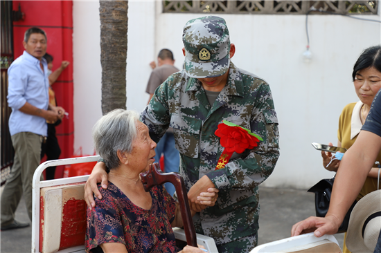 當(dāng)日,新兵們身著嶄新軍裝,胸前佩戴大紅花,軍姿筆挺地站列家長兩側(cè),聆聽政委李峰的講話:“你們從體檢、政考、役前教育訓(xùn)練、封閉隔離等環(huán)節(jié)中脫穎而出。在這即將奔赴軍營之際,對你們和家長表示祝賀,希望你們要不忘初心,堅(jiān)定從軍報(bào)國的信念,把滿腔的熱情轉(zhuǎn)化為報(bào)國之志;要把握機(jī)會,積極主動(dòng)參加訓(xùn)練,爭當(dāng)優(yōu)秀士兵、班長骨干,在軍營建功立業(yè);要心系故里,牢記家鄉(xiāng)親人殷切期盼,為家鄉(xiāng)爭光添彩?!?/p>
