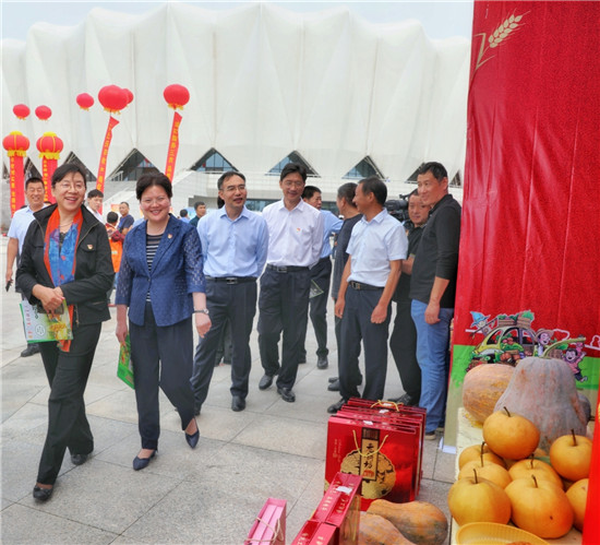 在固城鄉(xiāng)農(nóng)副產(chǎn)品展臺(tái),談起豐收節(jié),李報(bào)中滿臉喜悅。今年他承包的200多畝蘆筍種植基地大豐收,在致富的同時(shí),還吸納十幾名貧困戶在基地務(wù)工,帶動(dòng)他們脫貧致富?!斑@是我們農(nóng)民自己的節(jié)日,借著豐收節(jié)不僅能推介農(nóng)副產(chǎn)品,大家還能跟著熱鬧放松,是一舉多得的好事情?!崩顖?bào)中高興地說。