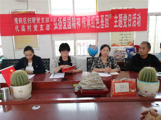 為進一步教育引導黨員、干部弘揚愛國精神,傳承紅色基因,夯實基層黨支部戰(zhàn)斗堡壘和黨員先鋒模范作用。9月22日(農歷初六),淮陽區(qū)婦聯(lián)黨支部在幫扶村大連鄉(xiāng)代廟行政村,與該村黨支部共同開展“弘揚愛國精神 傳承紅色基因”9月份主題黨日活動。區(qū)婦聯(lián)全體黨員、代廟村黨支部在家黨員參加了活動。