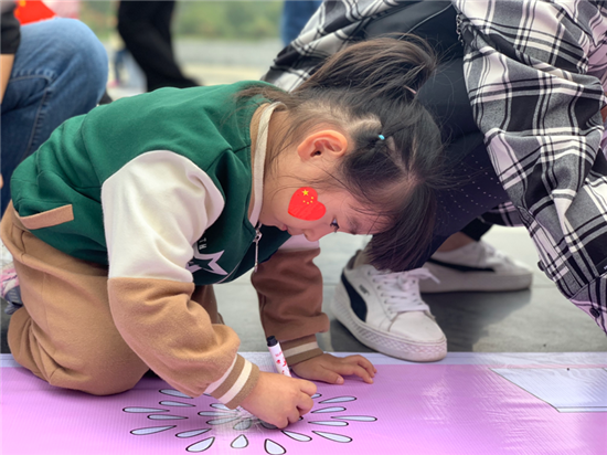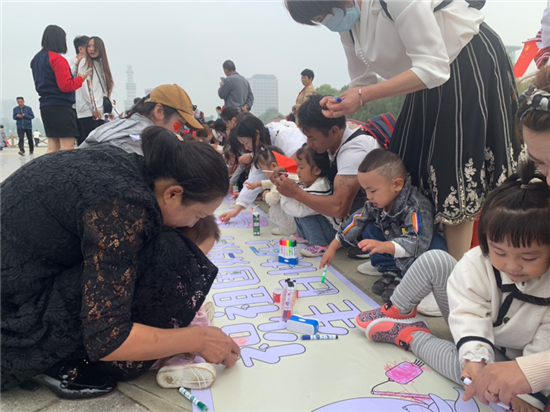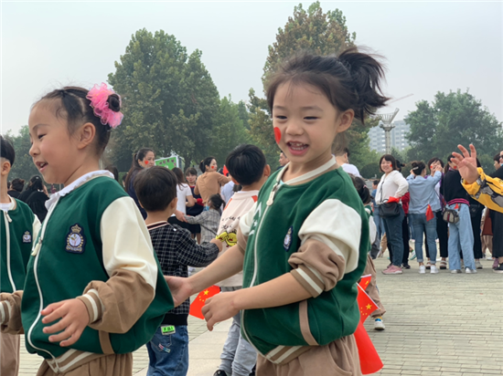 9月30日上午,在周口公園里,一群幼兒園的小朋友通過做游戲,涂畫卷等活動歡度國慶節(jié)。②9