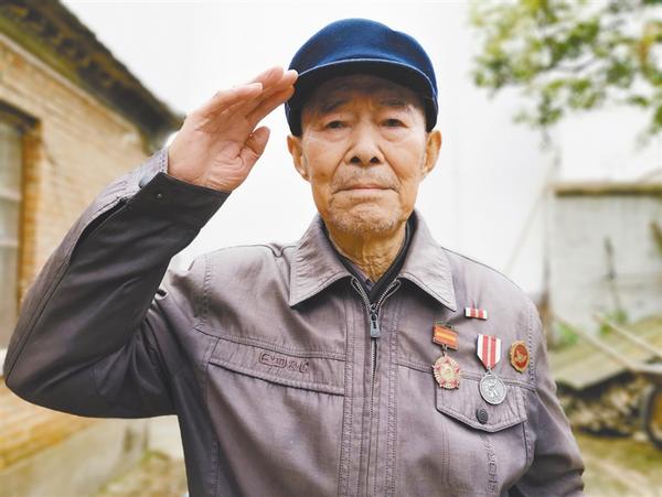 聽說記者要為他照相,老人立即要求家人為他換身干凈的衣服,很認(rèn)真地把軍功章、獎?wù)乱灰淮髟谏砩?,雙腿合攏,努力地挺直上身,對著鏡頭打了一個標(biāo)準(zhǔn)的敬禮。