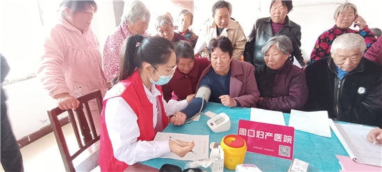 2020年第11個(gè)全國(guó)“敬老月”和第八個(gè)“老年節(jié)”,團(tuán)市委聯(lián)合周口婦產(chǎn)醫(yī)院走進(jìn)西華縣李方口村開展敬老愛(ài)心義診活動(dòng)。圖為義診現(xiàn)場(chǎng)。(記者 馬月紅 攝)