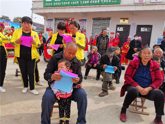 “俺家住在老冢鎮(zhèn),平安建設(shè)常宣傳。專職巡邏無被盜,提高群眾安全感……”這是10月20日,在太康縣老冢鎮(zhèn)新李村文化廣場(chǎng)上村民們表演的方言快板《安全感調(diào)查》,通俗易懂的語(yǔ)言,精彩有趣的說唱贏得了在場(chǎng)群眾的陣陣掌聲。