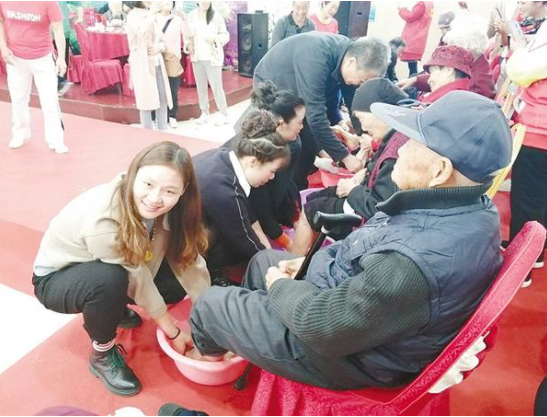 重陽節(jié)當(dāng)天,周口市總工會、周口市教體局、川匯區(qū)供銷社在鴻運(yùn)酒店舉辦“九九重陽節(jié) 濃濃敬老情”孝老愛親活動,邀請200多名社區(qū)老年人及家屬參加?;顒蝇F(xiàn)場,家屬為老人進(jìn)行了洗腳(如圖),主辦方安排了精彩的文藝演出,博得觀眾陣陣掌聲,讓社區(qū)老人過了一個歡樂祥和的重陽節(jié)。
