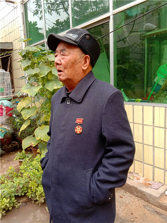 快到王景文家時(shí),記者與他取得了聯(lián)系,沒想到他竟到路口來迎記者,看到他硬朗的身板和健康的身體,聽他說話聲音洪亮、底氣十足,記者還是很欣慰的,畢竟經(jīng)歷了70年的風(fēng)雨洗禮,還能行走自如、聲如洪鐘,的確是寶刀不老。被他迎進(jìn)家,其老伴滿頭銀發(fā),喜瞇瞇地讓記者進(jìn)屋,王老先生去里屋找出了一枚抗美援朝紀(jì)念章,并說抗美援朝和平紀(jì)念章等物品都放丟了,找不到了,有些遺憾。記者就開門見山地說要聽他講講參加抗美援朝的故事,他不好意思地笑了:“講不好,年齡大了,記性不好,有好多事都記不清了……”當(dāng)問起他老家是哪里時(shí),王老先生還是打開了話匣子。1934年,他出生在淮陽縣劉振屯鄉(xiāng)耿樓大隊(duì)李樓村,由于家境貧寒,他從小就跟隨家人一路逃荒要飯來到了扶溝,但日子還是艱難,為了能活命,父母無奈把他送給了扶溝縣城一戶人家,從此他就成了這戶人家的孩子,并于1951年5月結(jié)婚??山Y(jié)婚沒幾個(gè)月,縣里就開始征兵了。當(dāng)兵離家,要丟下妻子,更何況妻子已有孕在身,他真舍不得;保家衛(wèi)國,是義務(wù)是責(zé)任是擔(dān)當(dāng),他責(zé)無旁貸。家與國,他毅然選擇去當(dāng)兵。與新婚燕爾的妻子依依惜別,他踏上了行軍的征程。那時(shí)可沒有車接送,去往目的地,全靠兩條腿,行軍與訓(xùn)練的苦與累難以想象。問他不害怕當(dāng)兵打仗嗎?他回答:“不怕!”語氣堅(jiān)定而有力。生活的磨難讓他對安穩(wěn)的生活有一種渴望,他明白戰(zhàn)爭會(huì)讓國家陷入混亂不堪的局面,老百姓的生活會(huì)更加艱難,為了祖國的和平安寧和兄弟姐妹的幸福,他愿意去當(dāng)兵打仗。保家衛(wèi)國的種子早已種在了他的心里。