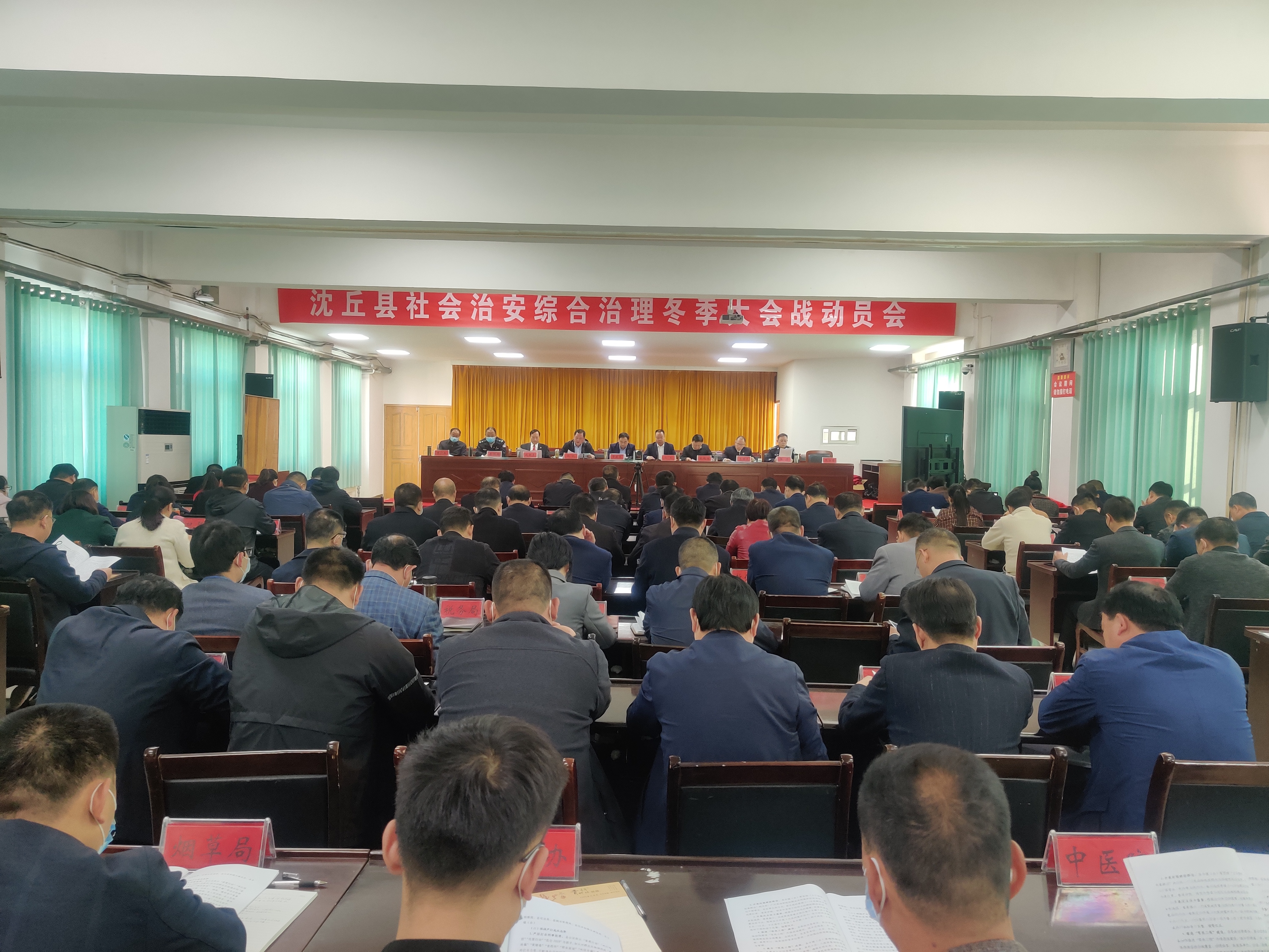 11月4日,沈丘縣組織召開社會(huì)治安綜合治理冬季大會(huì)戰(zhàn)動(dòng)員會(huì)??h領(lǐng)導(dǎo)賈慶偉、段然、張銳、鹿槐生、趙振勇、李世龍、李恒新、張彥、李廣其出席會(huì)議??h直各單位及各鄉(xiāng)鎮(zhèn)(辦)主要負(fù)責(zé)人參加會(huì)議。會(huì)上,副縣長張銳宣讀了《沈丘社會(huì)治安綜合治理大會(huì)戰(zhàn)工作方案》。