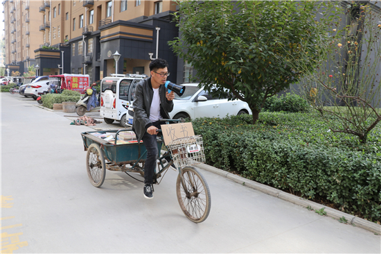 行駛30多分鐘后,劉啟昌來到太康縣城鑫港灣小區(qū),打開喇叭開關(guān),吆喝了起來:“誰家賣書,誰家有多余的書籍賣……”聽到吆喝聲,居民崔海英從家里抱出來一摞書?!叭亲魑臅瑢W(xué)生看了對(duì)寫作有好處。”崔海英把書遞給劉啟昌說。