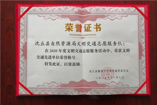 沈丘縣自然資源局文明交通志愿服務(wù)受表彰
