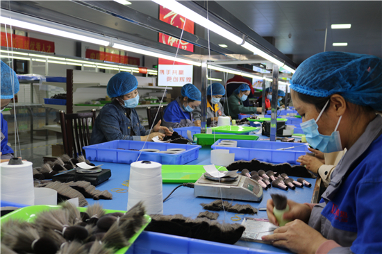 “從簡單的梳羊毛到如今做高檔化妝刷,從產(chǎn)業(yè)鏈的末端做到頂端,從養(yǎng)家糊口到賺外匯,經(jīng)過多年的滾動發(fā)展,鹿邑縣硬是把尾毛化妝刷這種‘小手藝’做成了助推縣域經(jīng)濟(jì)高質(zhì)量發(fā)展的‘大產(chǎn)業(yè)’。目前,全縣大大小小的化妝刷企業(yè)達(dá)1000多家,尾毛出口總量占全國化妝刷原毛出口的80%,年產(chǎn)羊毛3000多噸、尼龍毛9000多噸,生產(chǎn)各類化妝刷1.5億套,產(chǎn)品遠(yuǎn)銷20多個國家和地區(qū)。另外,作為尾毛的衍生產(chǎn)業(yè),羊毛衫加工產(chǎn)業(yè)近幾年的異軍突起,更是激活了全縣創(chuàng)業(yè)就業(yè)的一池春水。統(tǒng)計(jì)數(shù)字顯示,近幾年,鹿邑縣持續(xù)圍繞尾毛化妝刷特色產(chǎn)業(yè),強(qiáng)鏈延鏈補(bǔ)鏈,開展精準(zhǔn)招商,化妝刷及配套企業(yè)已發(fā)展到135家,實(shí)現(xiàn)產(chǎn)值50多億元,出口創(chuàng)匯21億;羊毛衫紡織企業(yè)發(fā)展到54家,有電腦織機(jī)6500臺,年產(chǎn)各類針織服裝6000萬件,使鹿邑成為河南省最大的化妝刷生產(chǎn)基地、羊毛衫加工基地,帶動全縣7.5萬人創(chuàng)業(yè)就業(yè)。