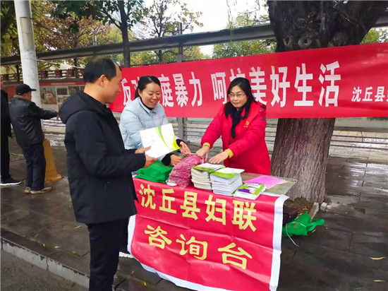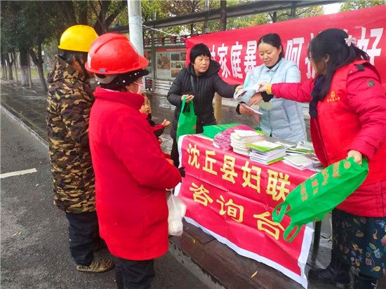 11月25日是國際反家庭暴力日。為進一步提高全社會反家庭暴力意識,加大對《反家庭暴力法》的宣傳,有效預防和制止家庭暴力,促進家庭和諧,保障婦女群眾在婚姻家庭中的合法權益。為此,沈丘縣婦聯(lián)在城區(qū)組織開展了以“反對家庭暴力,呵護美好生活”為主題的法治宣傳活動。