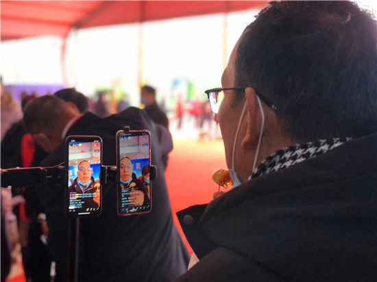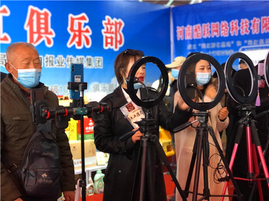 28日早上7時(shí)許,周口網(wǎng)紅俱樂(lè)部的網(wǎng)紅們和工作人員就開(kāi)始為今天的直播做準(zhǔn)備,早早把直播設(shè)備搬到現(xiàn)場(chǎng),進(jìn)行調(diào)試。10時(shí)左右,周商產(chǎn)品展示展覽活動(dòng)現(xiàn)場(chǎng)人頭攢動(dòng),熱鬧非凡,來(lái)自周口本地的9位網(wǎng)紅們陸續(xù)架好手機(jī)直播設(shè)備,打開(kāi)補(bǔ)光燈,開(kāi)始直播。現(xiàn)場(chǎng)的9位網(wǎng)紅各有特色,有打扮時(shí)髦的美女主播,有歌聲出眾的中年大叔,年齡最大的網(wǎng)紅是今年65歲的鹿邑大爺。網(wǎng)紅們一手拿著周口的蜂蜜、空心掛面、麻花、粉條、醬豆等土特產(chǎn),一邊對(duì)著手機(jī)屏幕里的粉絲熱情地展示和介紹起來(lái),有的還直接進(jìn)行現(xiàn)場(chǎng)吃播,不時(shí)與網(wǎng)友進(jìn)行唱歌、聊天互動(dòng),吸引了不少行人前來(lái)觀看。“原來(lái)在抖音上看過(guò)網(wǎng)紅帶貨,但沒(méi)見(jiàn)過(guò)真人, 今天終于見(jiàn)到真實(shí)的網(wǎng)紅了!感覺(jué)很有意思!”前來(lái)觀展的市民劉女士說(shuō)。