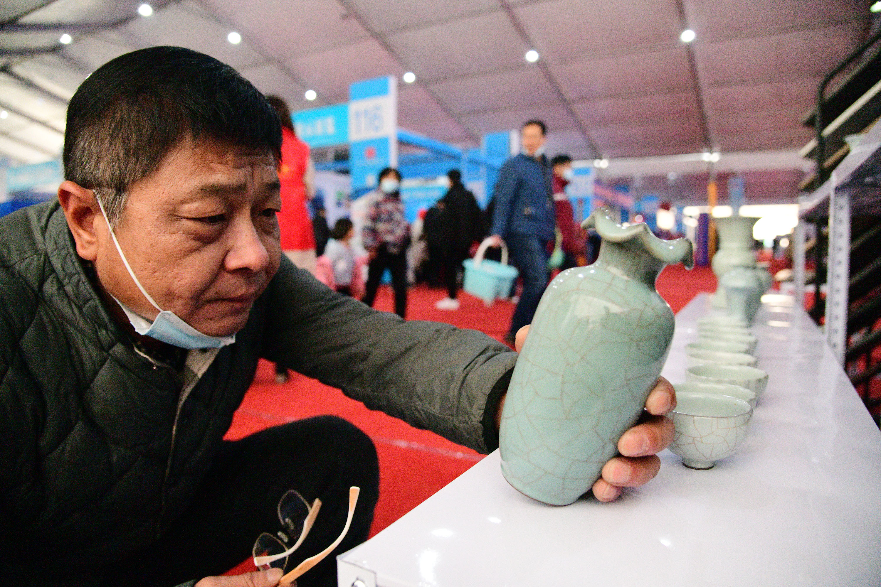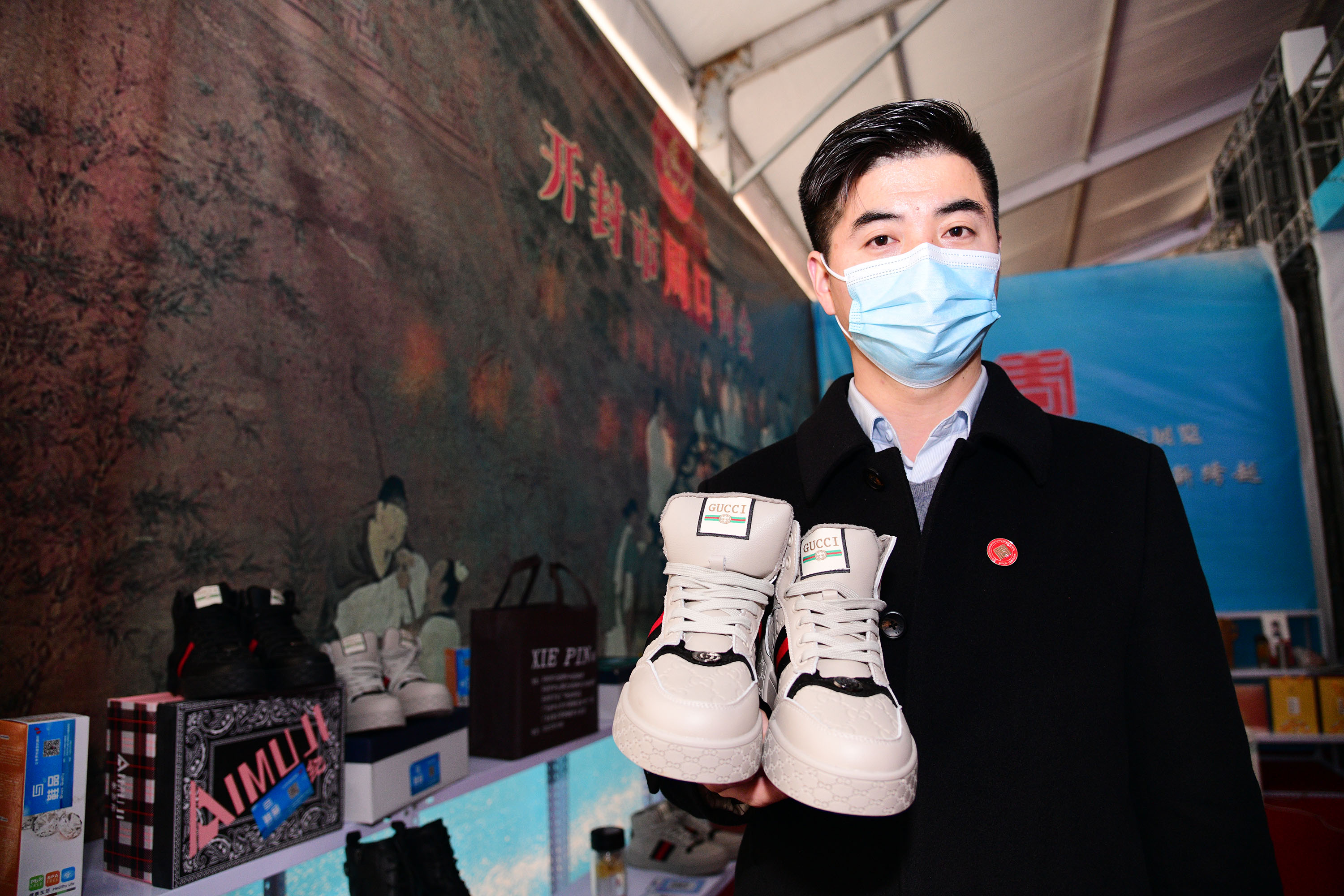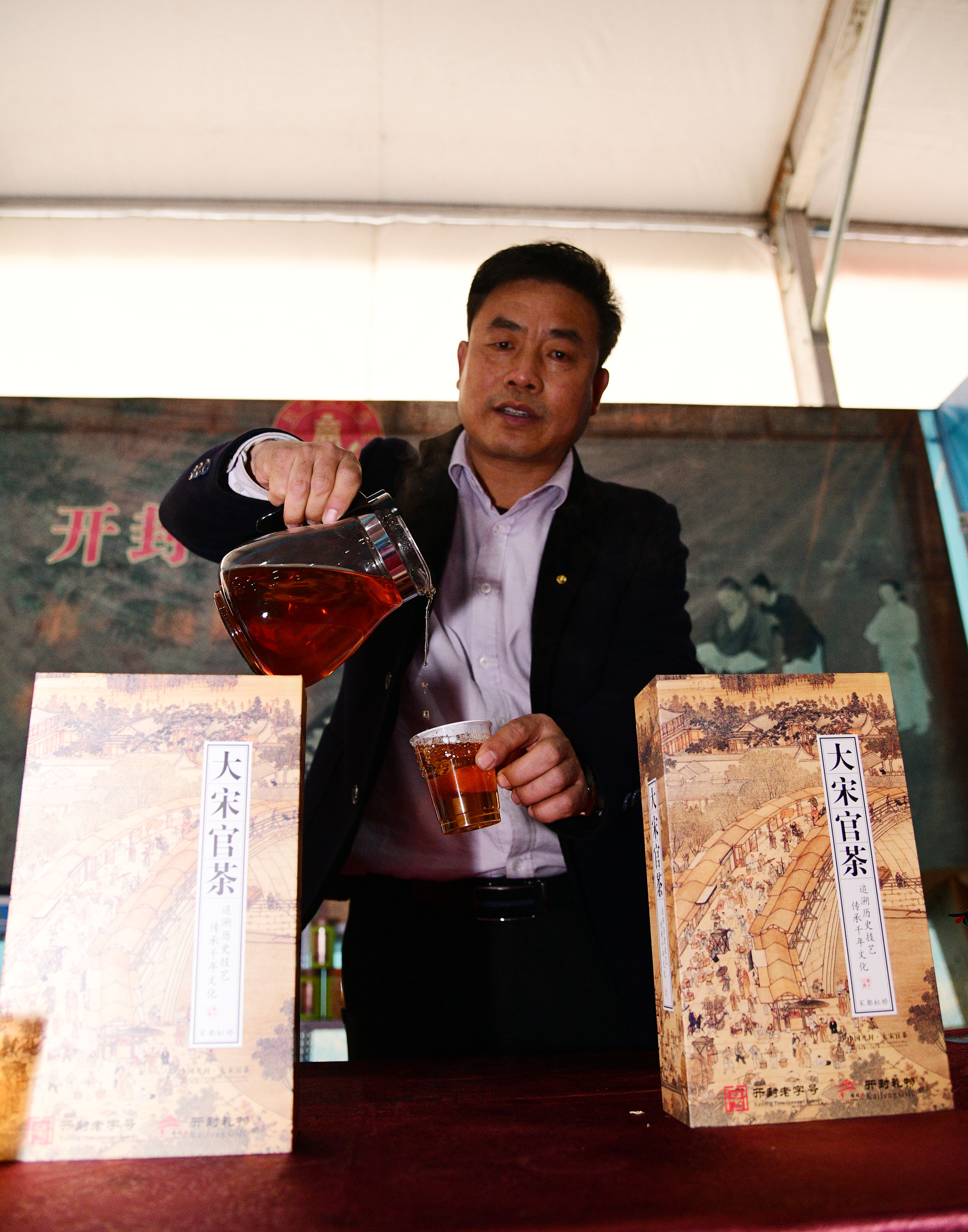 在展會上給顧客講述大宋官瓷品相的董俊,也是很厲害的周口企業(yè)家,能夠把開封老字號的官瓷,運營得風(fēng)生水起,大宋官瓷瓷器和汴繡被譽為七朝古都象征性的物產(chǎn),還有大宋官茶,含有被譽為茶中黃金的“金花菌”,是“河南老字號”、“非物質(zhì)文化遺產(chǎn)”,也被選入“首屆開封禮物”。大宋官茶源于宋神宗(公元1068年),它今天的主人是淮陽區(qū)新站籍企業(yè)家牛華麗,這位淮陽籍漢子從小在開封長大,對大宋官茶獨有情種,現(xiàn)在是大宋官茶掌舵人,是大宋官茶非遺傳承人。而福興齋桶子雞老總馬勇是沈丘人,這是開封的名吃,去開封旅游,吃桶子雞和小籠包,成為游客必須品嘗的美味。馬勇參加周商大會帶回周口的桶子雞深受家鄉(xiāng)人的喜歡,一直熱賣。而“鞋品”鞋的老總侯建峰是鄲城人,他在廣州設(shè)有代加工廠,鞋子以河南為主要市場,在開封城由五個專賣店,同時也銷往全國。