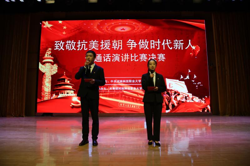 為銘記歷史、緬懷先烈、增強(qiáng)愛(ài)國(guó)主義精神,培養(yǎng)新時(shí)代大學(xué)生的責(zé)任與擔(dān)當(dāng)意識(shí)。12月1日晚,河南科技職業(yè)大學(xué)舉辦“致敬抗美援朝,爭(zhēng)做時(shí)代新人”普通話演講比賽。