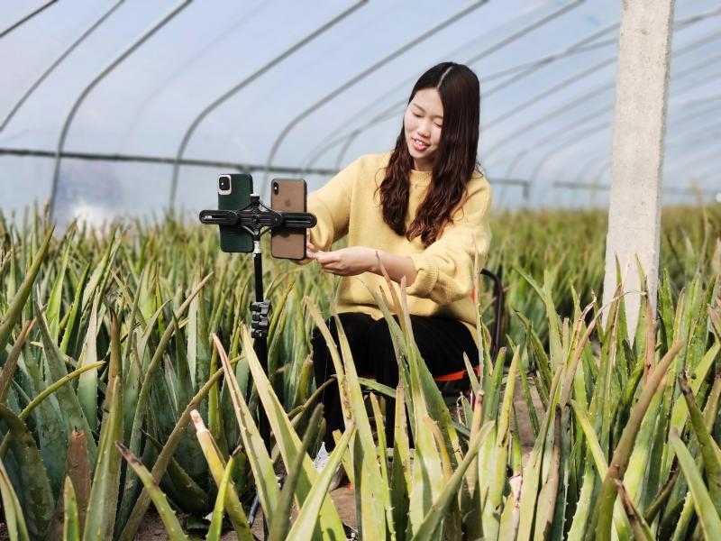 12月7日,川匯區(qū) 華耀城辦事處葛灣村孫立偉的蘆薈大棚里在進行直播賣貨。周口市川匯區(qū) 華耀城辦事處葛灣村發(fā)展種植大棚蘆薈,成為當?shù)氐奶厣洕a業(yè),并成立集體經濟組織合作社,全村統(tǒng)一規(guī)劃,結合市場需求規(guī)律,由合作社與企業(yè)簽訂訂單或通過電商平臺進行網(wǎng)絡銷售。①15